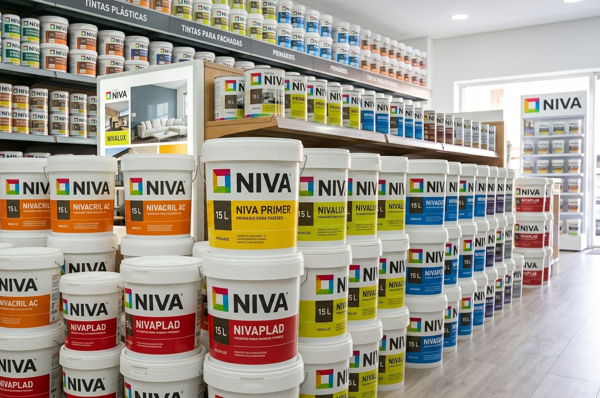 A Tintas Niva fabrica em Malveira e vende diretamente a revendedores.